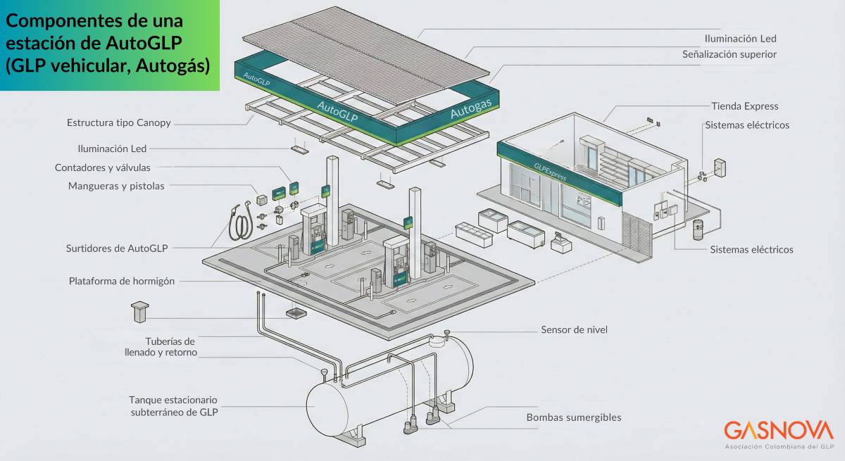 Radiografía del funcionamiento interior de una estación servicio dedicada al suministro de combustible vehicular a base de Gas Licuadeo del Petróleo (GLP), comúnmente conocido en Colombia como AutoGLP, y a nivel internacional como Autogás.