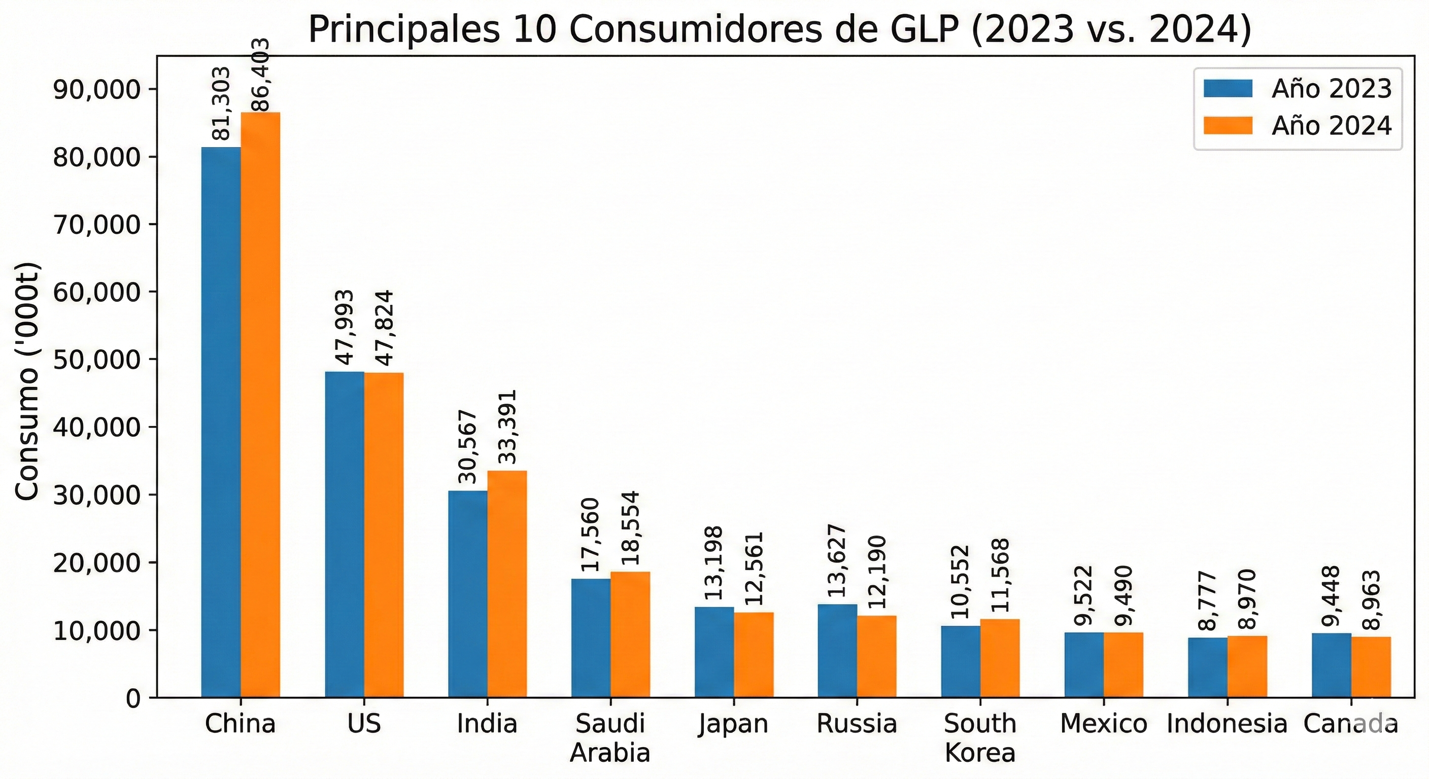 Este auge asiático contrasta con el comportamiento en América del Norte y Europa Oriental. Mientras Estados Unidos mantuvo un consumo estático, países como Canadá y Rusia vieron cierta reducción de su demanda interna.
